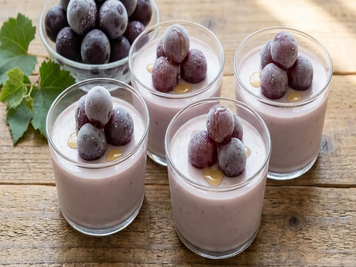 - 冷凍ぶどうと牛乳を混ぜ合わせ、型に移す