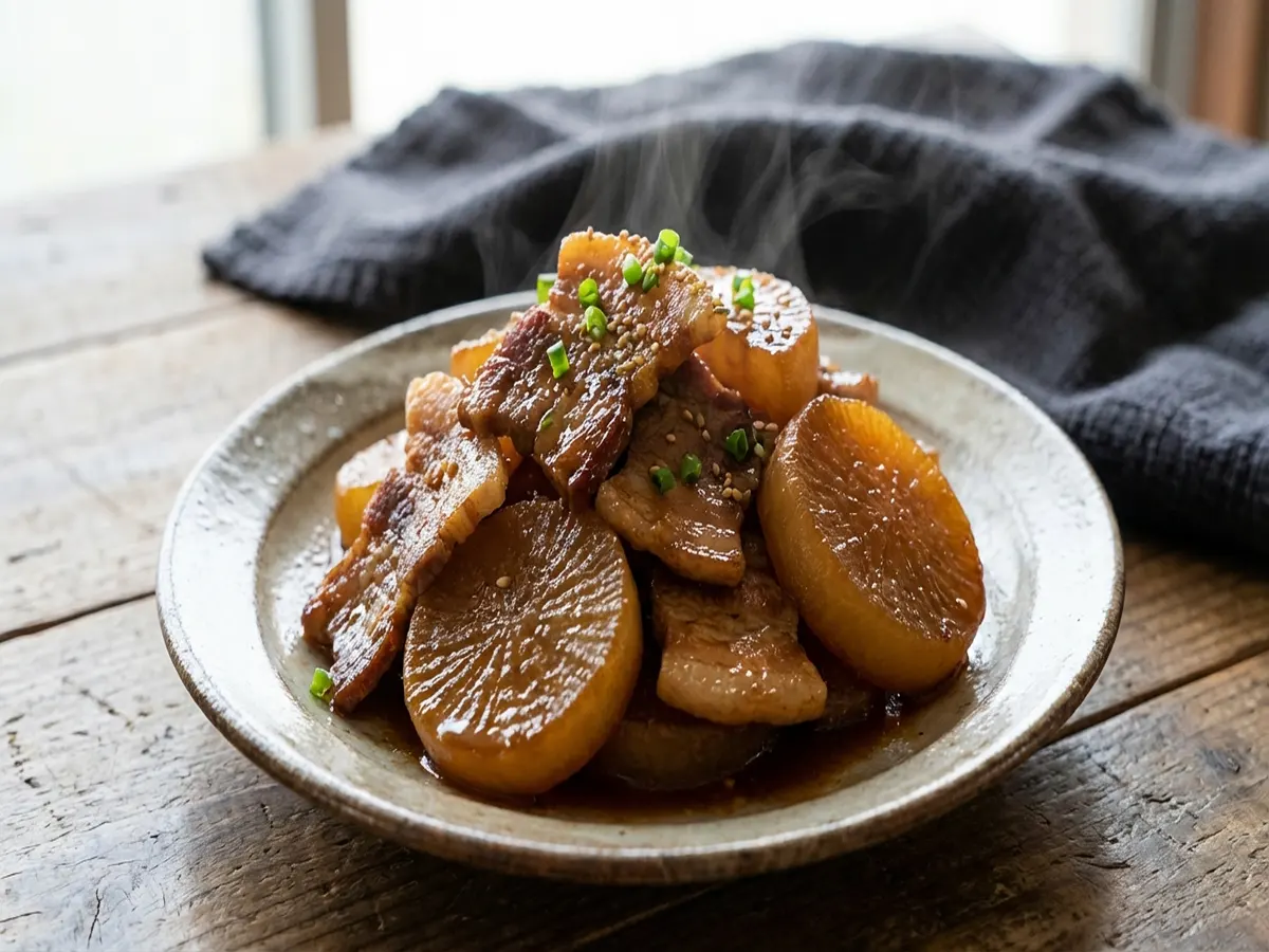大根アレンジレシピ「豚バラ大根」を紹介しました。