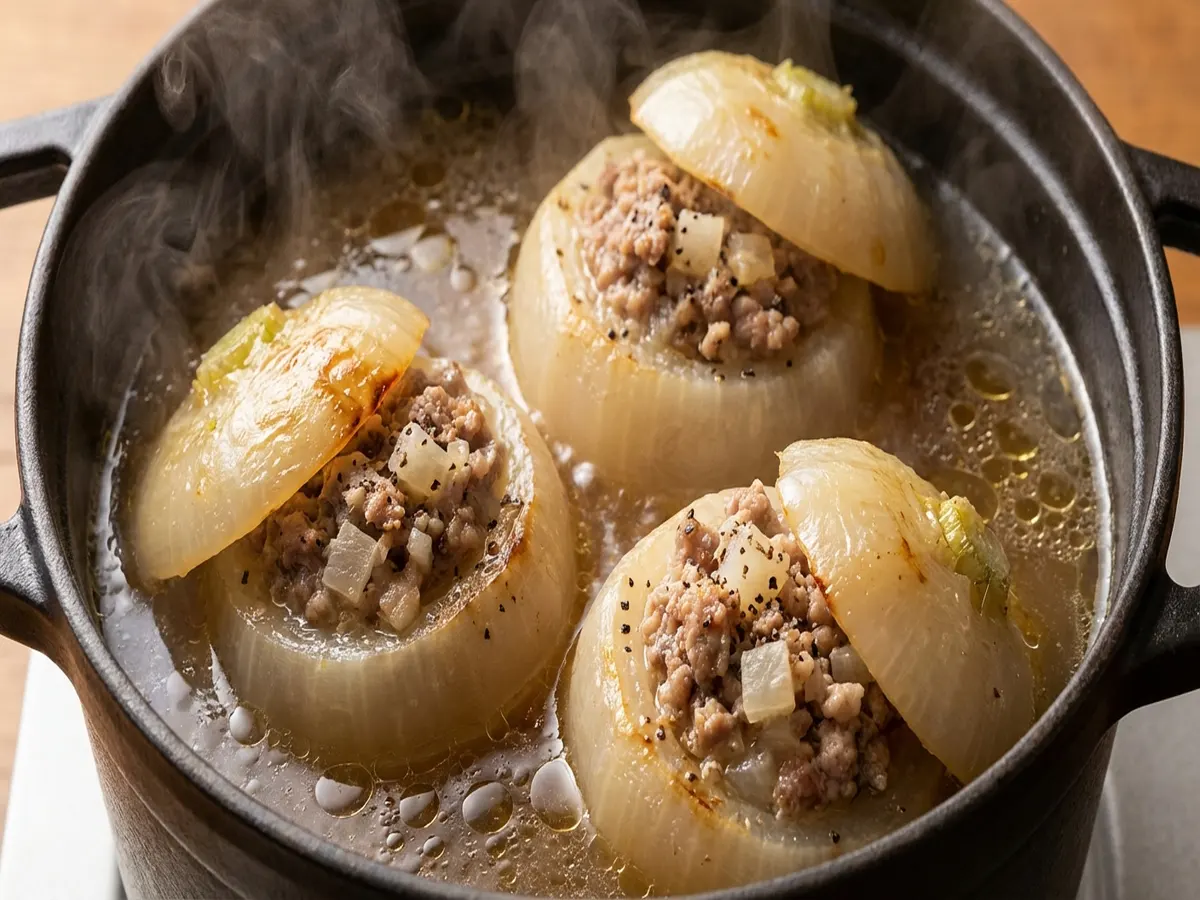 - カブに肉を詰める