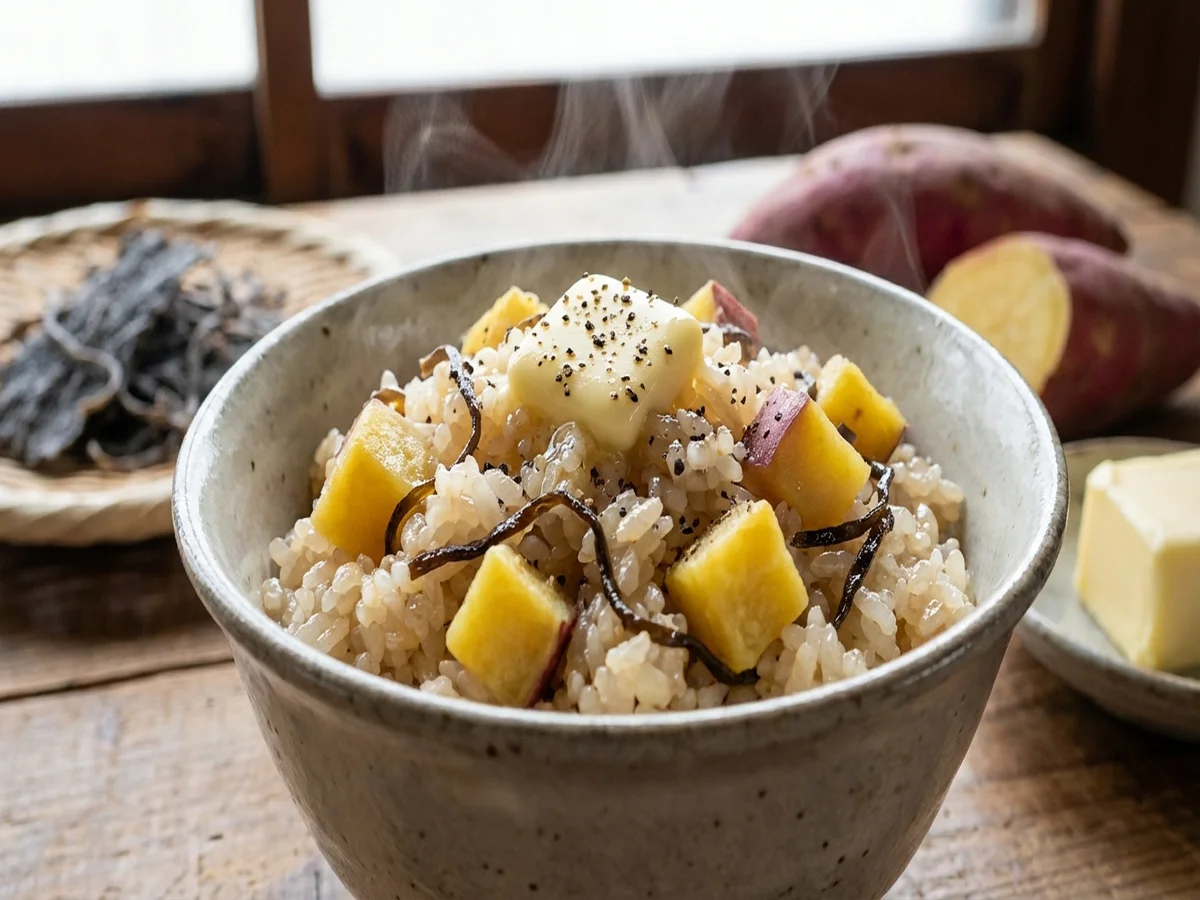 この記事では、サツマイモレシピ「さつまいもと塩昆布の炊き込みご飯」の作り方をまとめます!