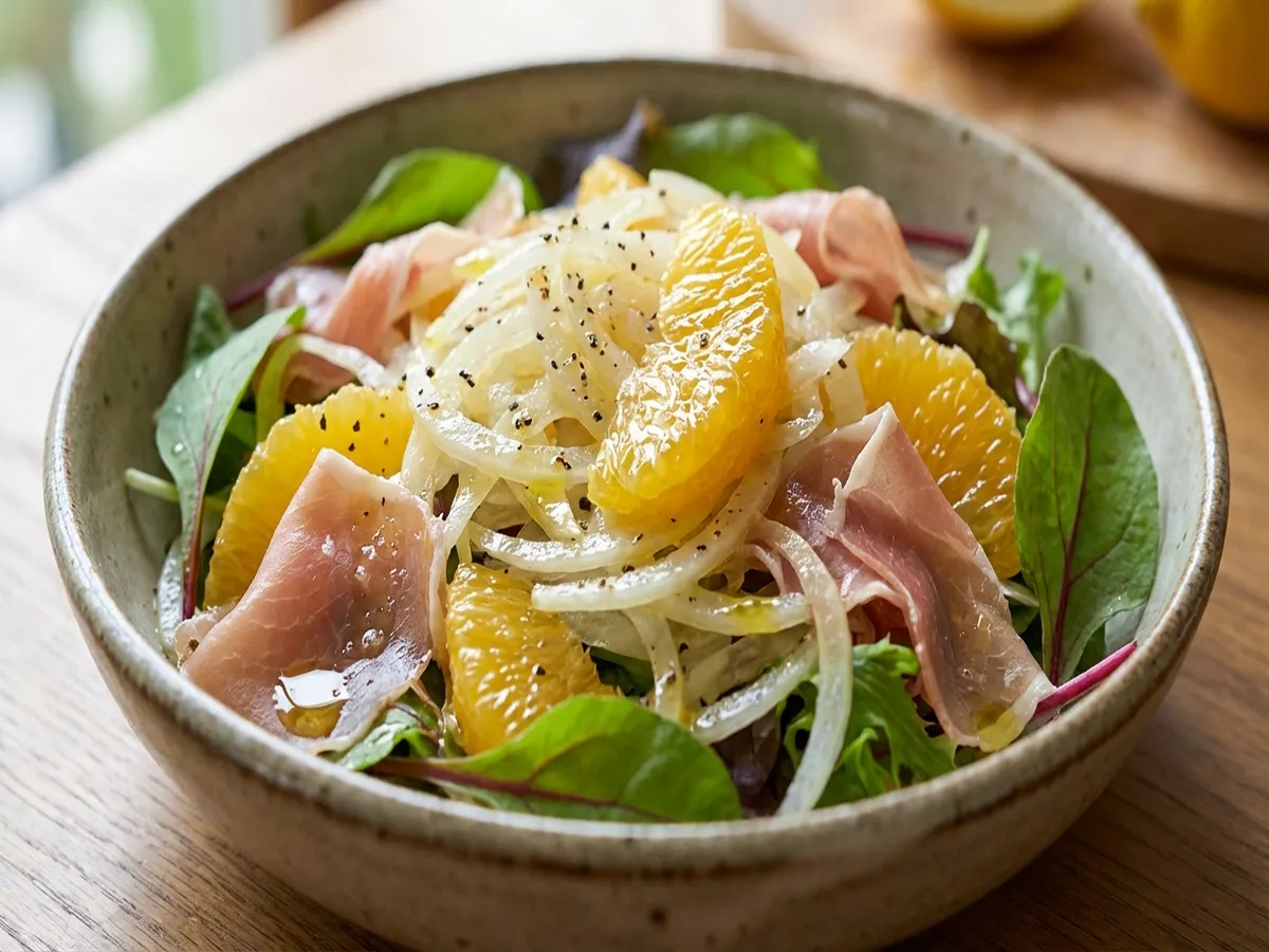 - 生ハム、甘夏、ベビーリーフを加えて和える