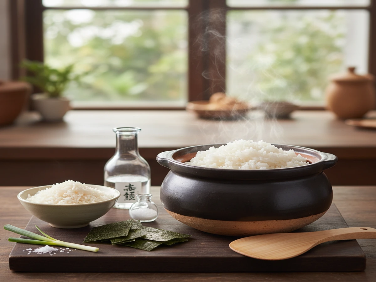 - 土鍋に米1合につき220mlの水を入れ、中火にかける