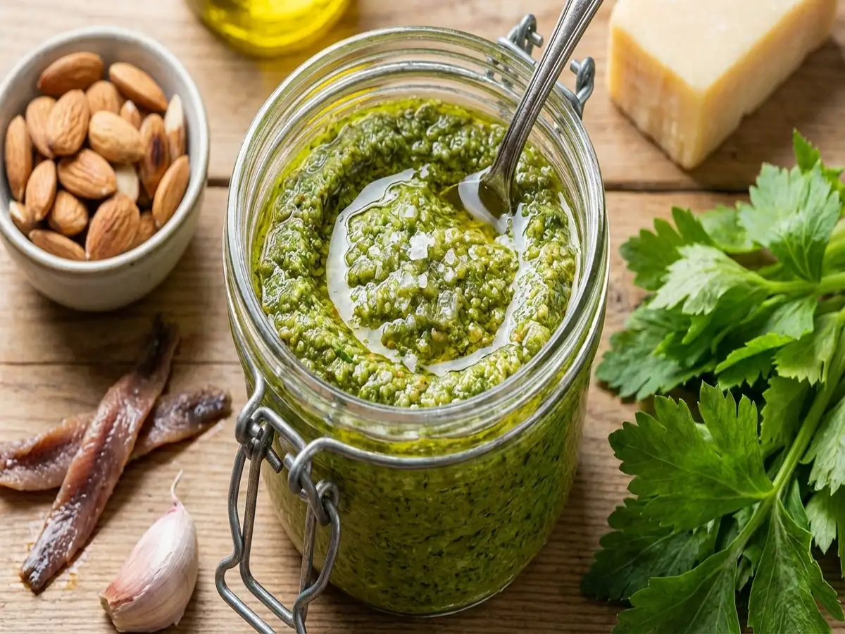 セロリ活用レシピ「セロリの葉のジェノベーゼ風ペースト」です。