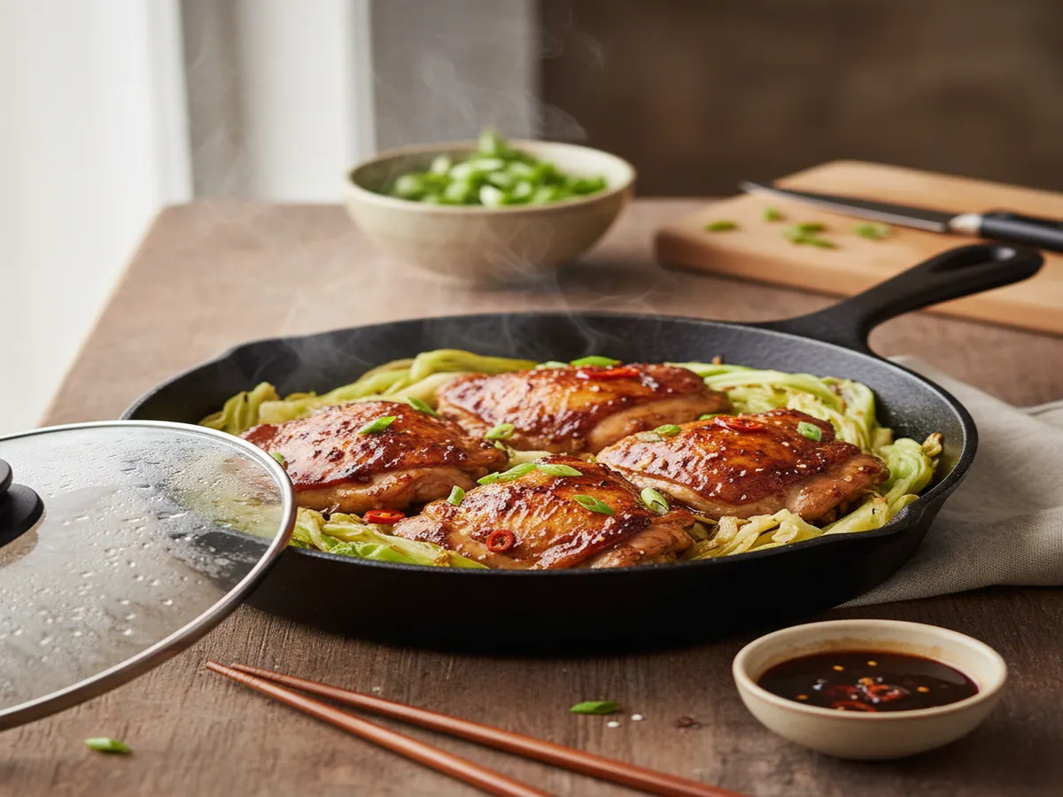 - 鶏もも肉とキャベツのフライパン蒸し