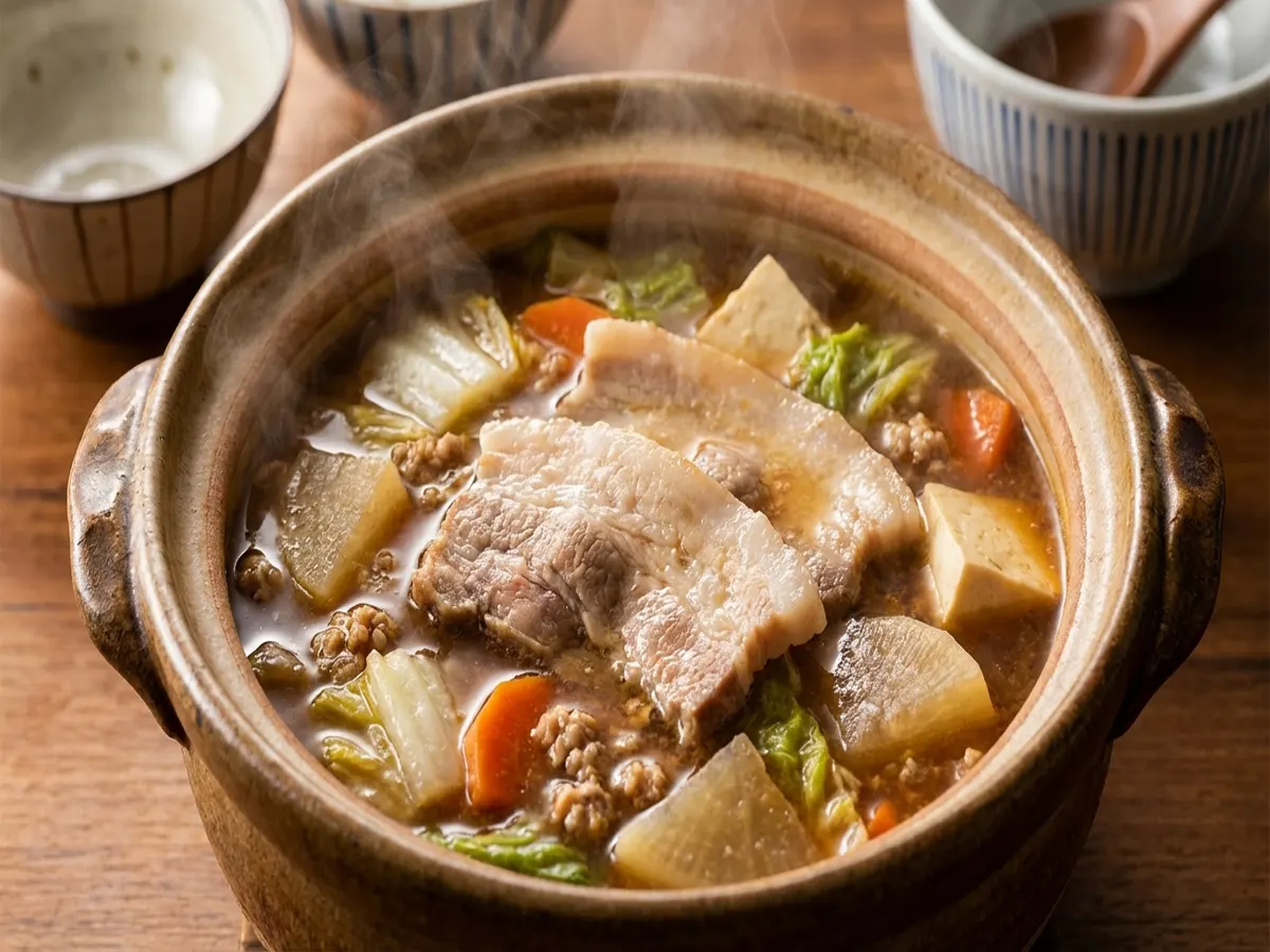 - 辛味噌を足せばチゲ風豚汁に!