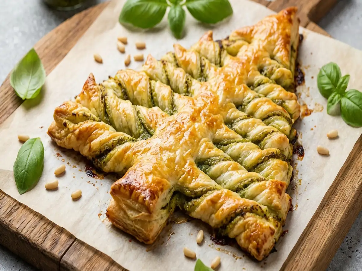 - 1枚のパイシートにバジルペーストをぬり、もう1枚のパイシートをかぶせる。