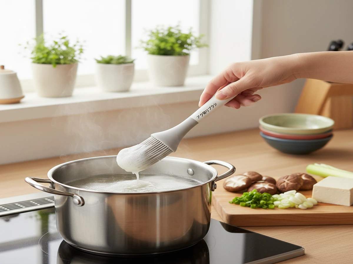 料理をするときにお玉を使わずにさっとなぞるだけであくが取れるブラシです。