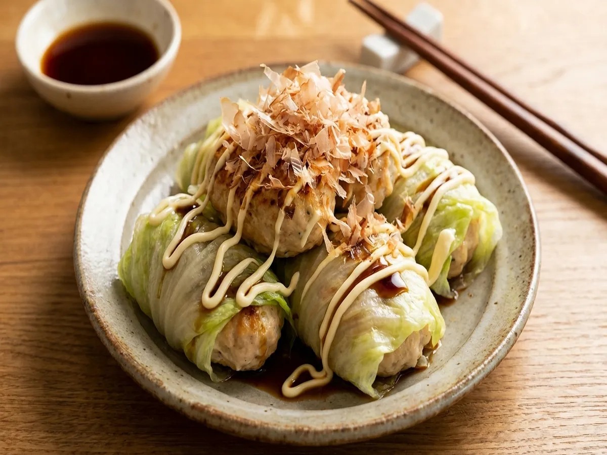 - 皿に盛り付け、マヨネーズ・しょうゆ・かつお節を適量かけたら完成