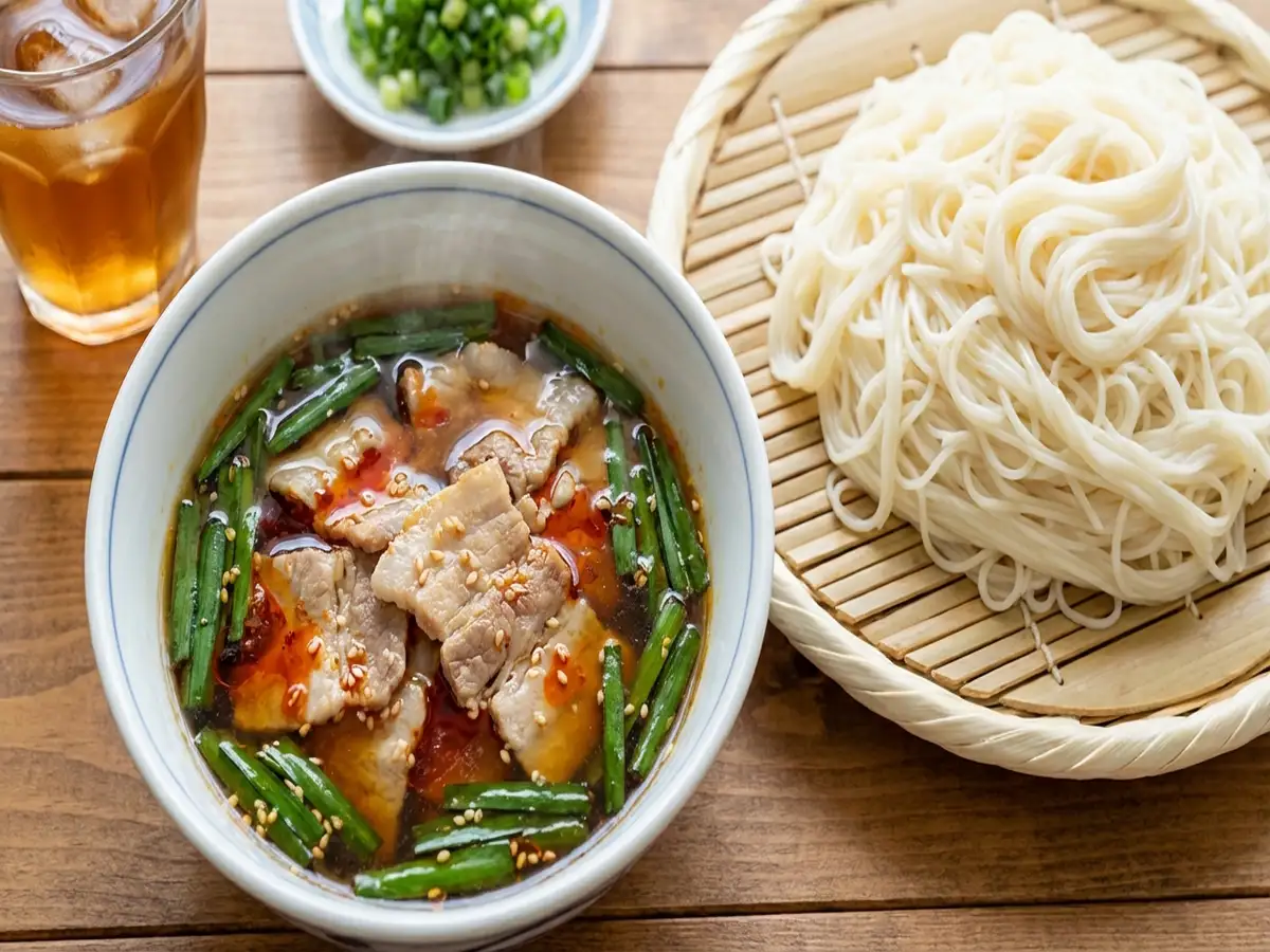 - 茹でて水気を切ったそうめんをつけて食べる