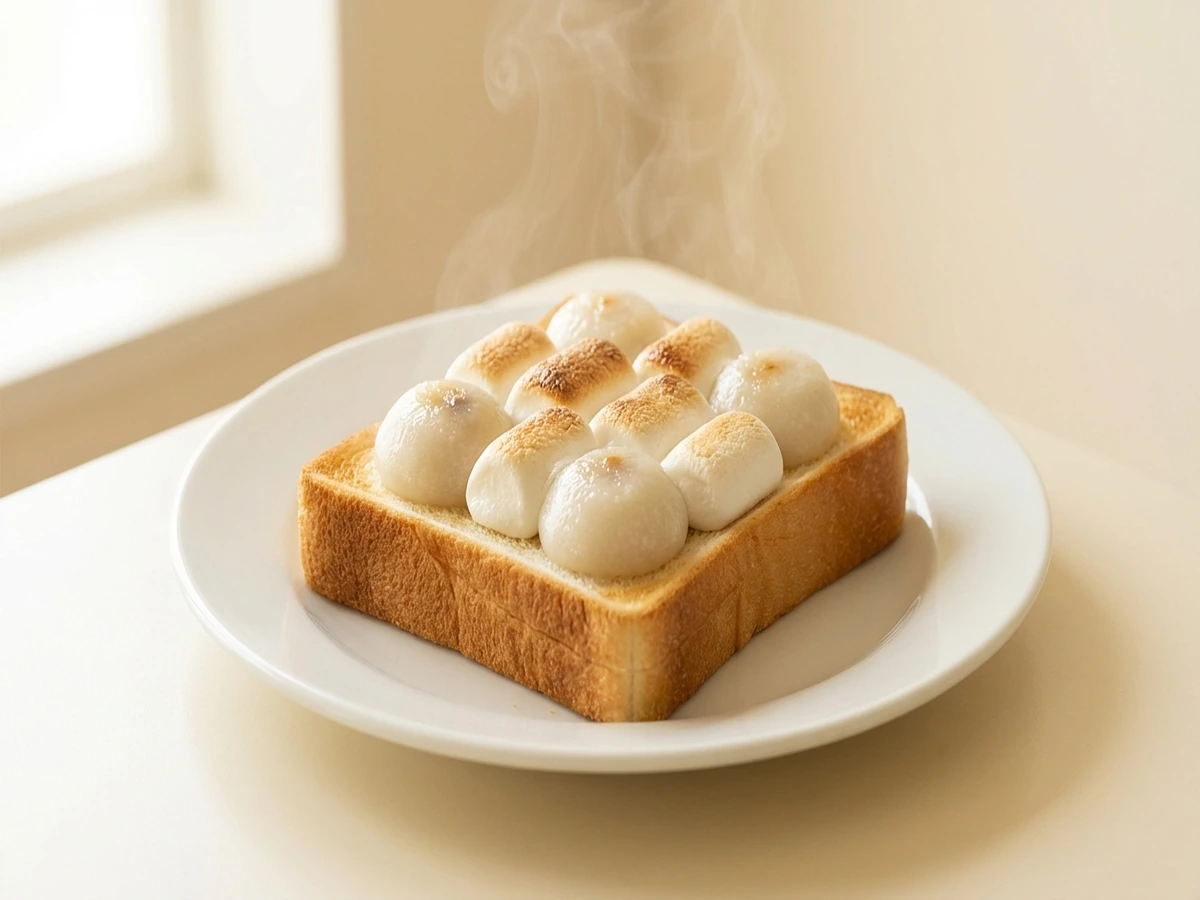 • トーストのあいたところにマシュマロを置き、トースター1200Wでマシュマロに焦げ目がつくまで焼く