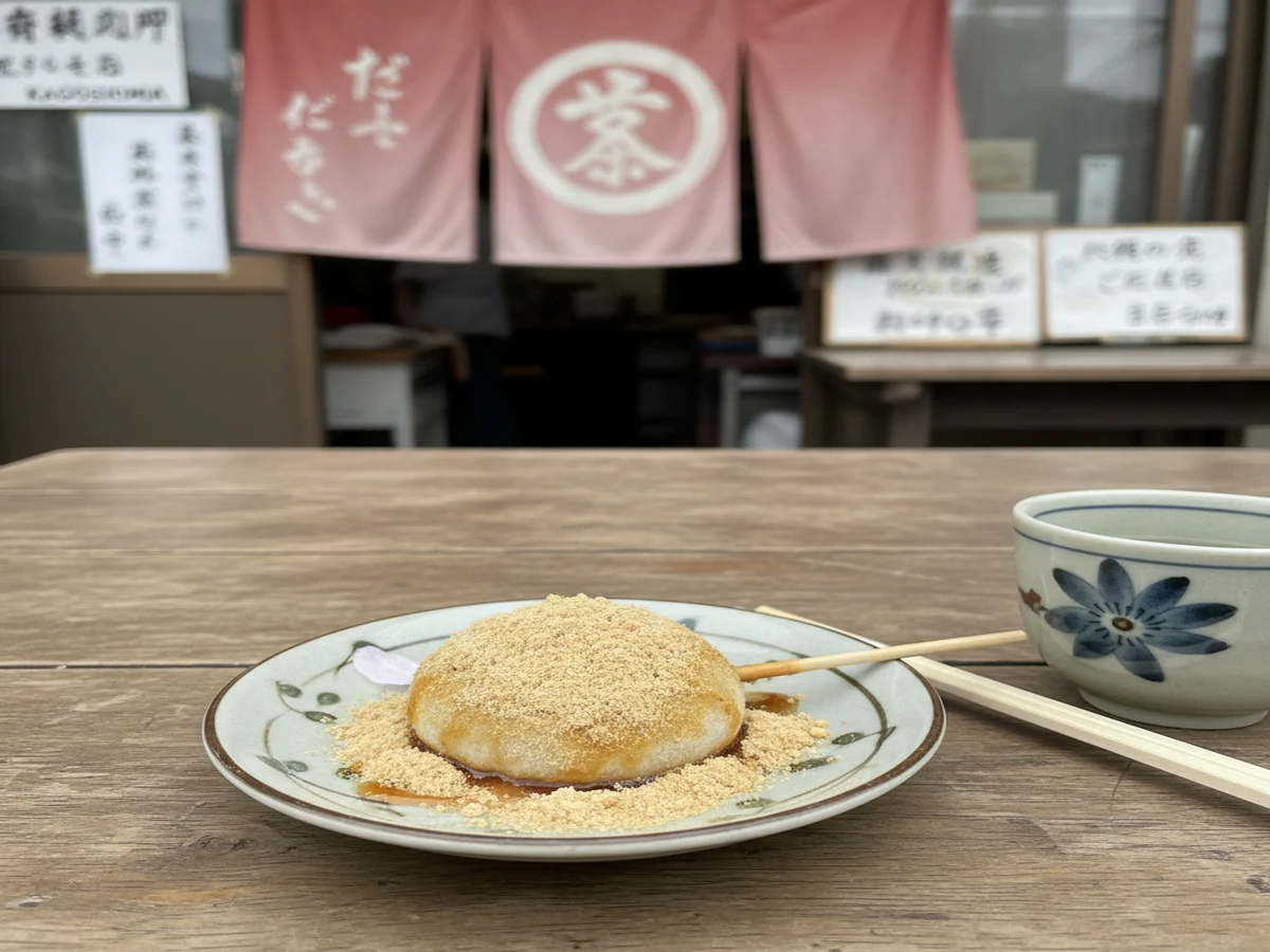 鹿児島の磯海水浴場周辺には、ジャンボ餅を提供する店が多く点在しています。