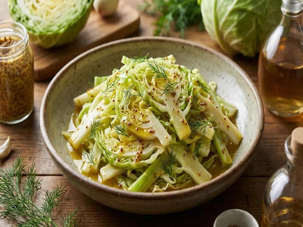 ・春キャベツの芯の甘酢マスタードあえ