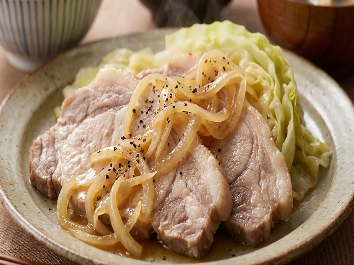 • 豚肉はそのまま粗熱を取り、糸を外して食べる分を5mm厚さに切る。キャベツは塩小さじ1を加えた湯カップ3で柔らかくゆで、ざるに上げて水けをきり、食べやすく切る。豚肉とキャベツを器に盛り、たれをかける。(豚肉の残りはゆで汁に浸して保存容器に入れ、冷蔵庫で3日間保存可能。)