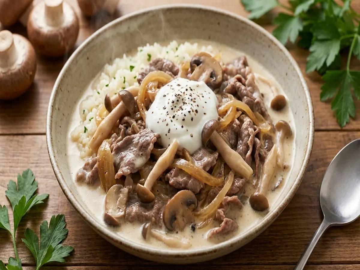 Course: 牛乳レシピ, 牛乳ときのこのミルクストロガノフ, ストロガノフCuisine: 牛乳レシピ, 牛乳ときのこのミルクストロガノフ2