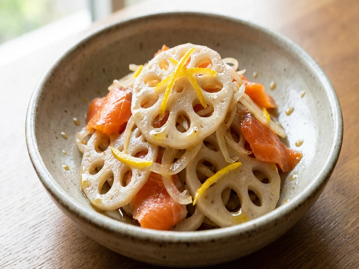 minutes前沢リカさんのれんこんレシピ「れんこんとスモークサーモンの和風マリネ」です。