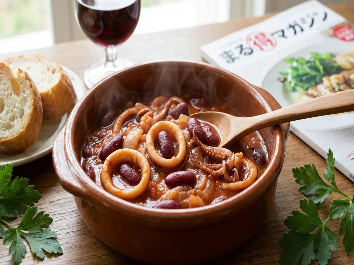 【まる得マガジン】赤いんげん豆とイカのトマト煮のレシピ 日高良実シェフの缶詰イタリアン(2022年5月10日)