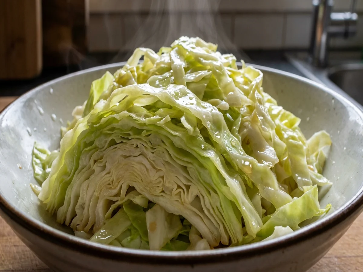 • キャベツを5mm幅に切って耐熱ボウルに入れてラップをかけ、電子レンジ600Wで1分半加熱する