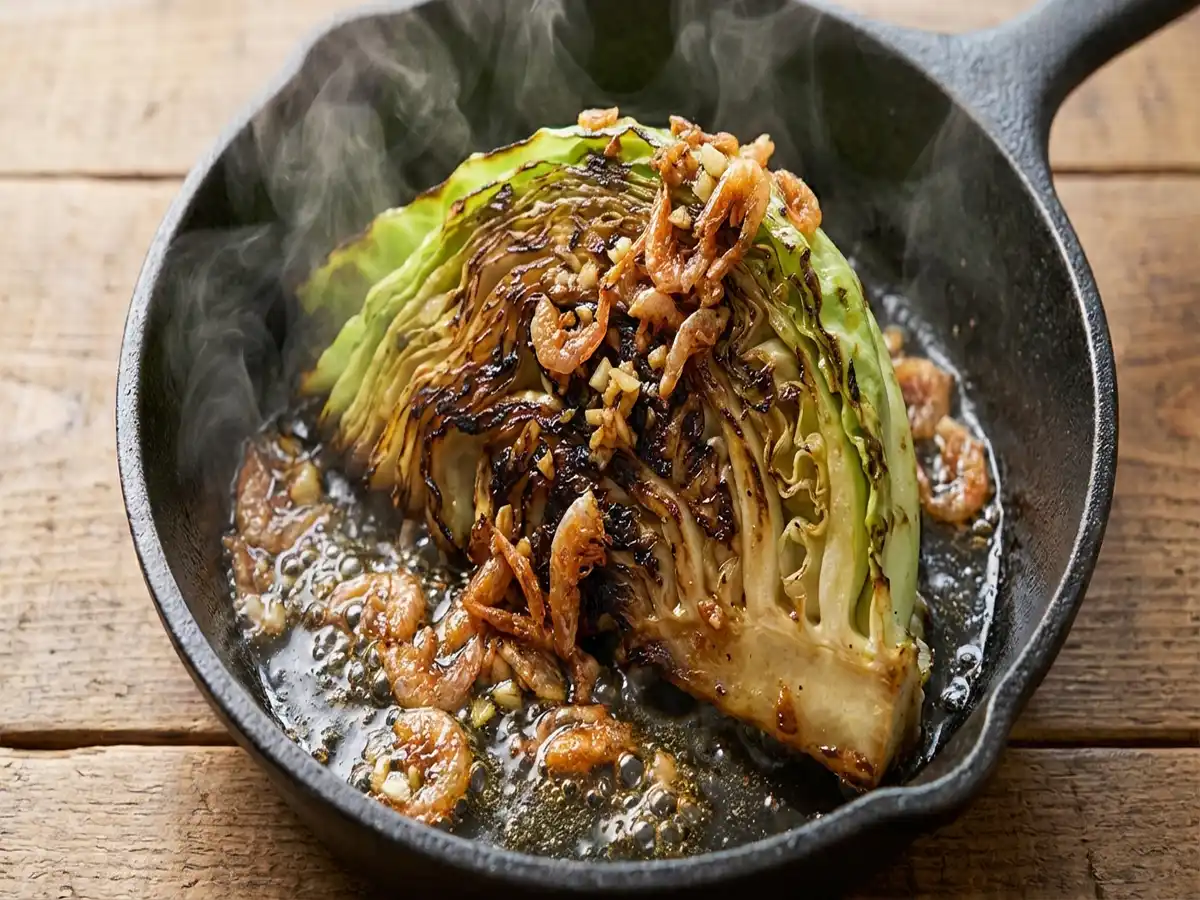 - 油を引いたフライパンでキャベツの断面に焼き色をつける