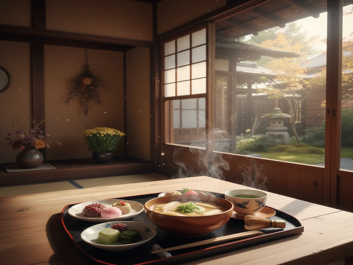 甘味茶屋のロングセラー「だんご汁と天むす2個セット」です。