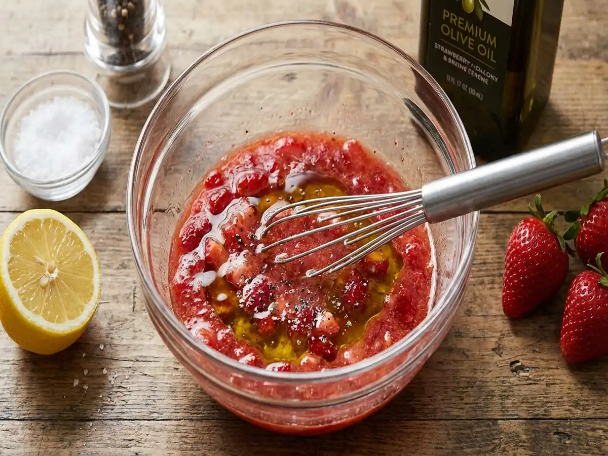 Recipe by NEWS123Course: 前菜Cuisine: いちごとオリーブオイルのドレッシング