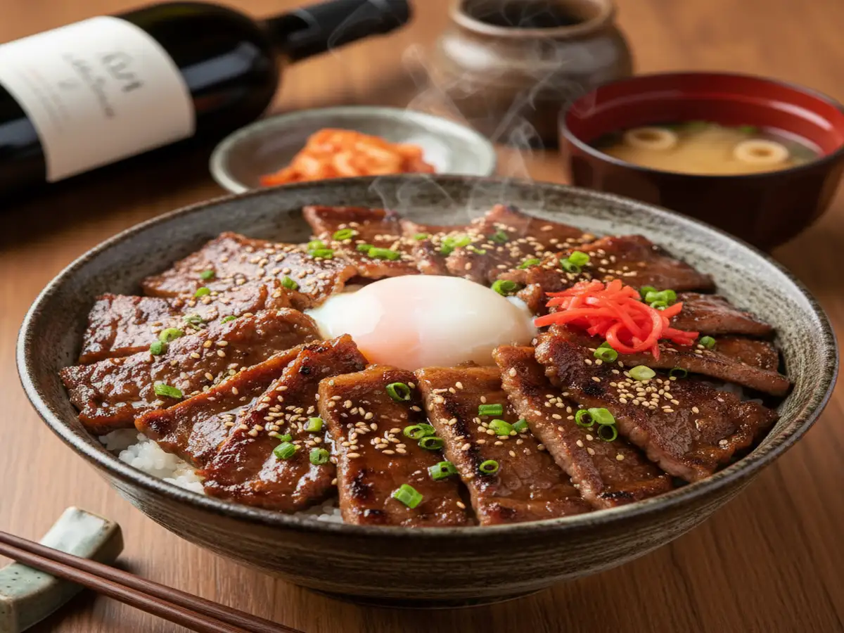 食堂鈴之助のカルビ丼は、厚めに切った約120gの甲州牛を使用し、店主厳選の甘辛ダレで味付けし焼き上げられた旨味が凝縮された肉をどんぶりにした絶品!