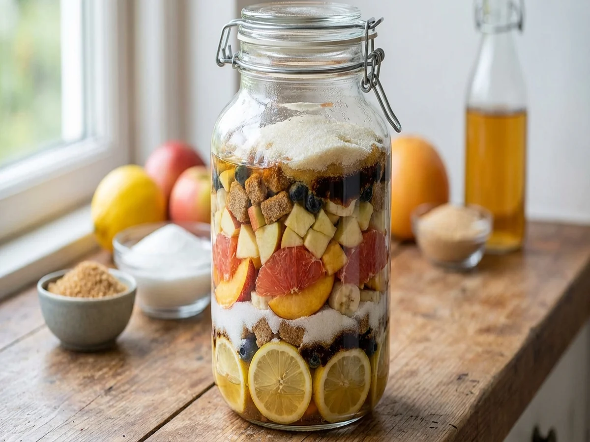 • 1週間ほどつけたら完成!お好みでりんご酢などのビネガーを一緒に漬け込めばフルーツビネガーになり美味しいようです。フルーツと甘味料、お酢の割合は1:1:1くらいがおすすめです。