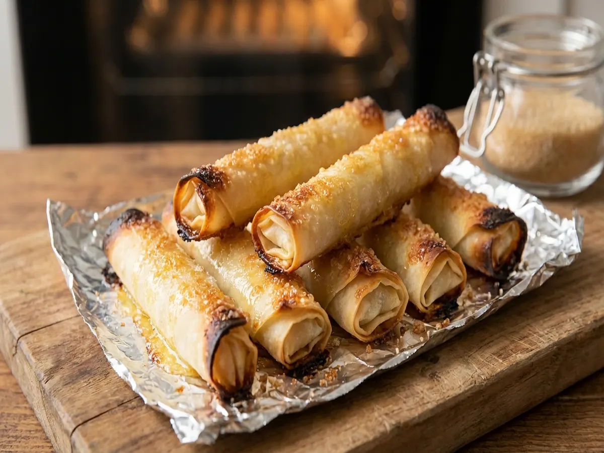 - 2つまみくらいの砂糖をかけ、手前からくるくる巻く