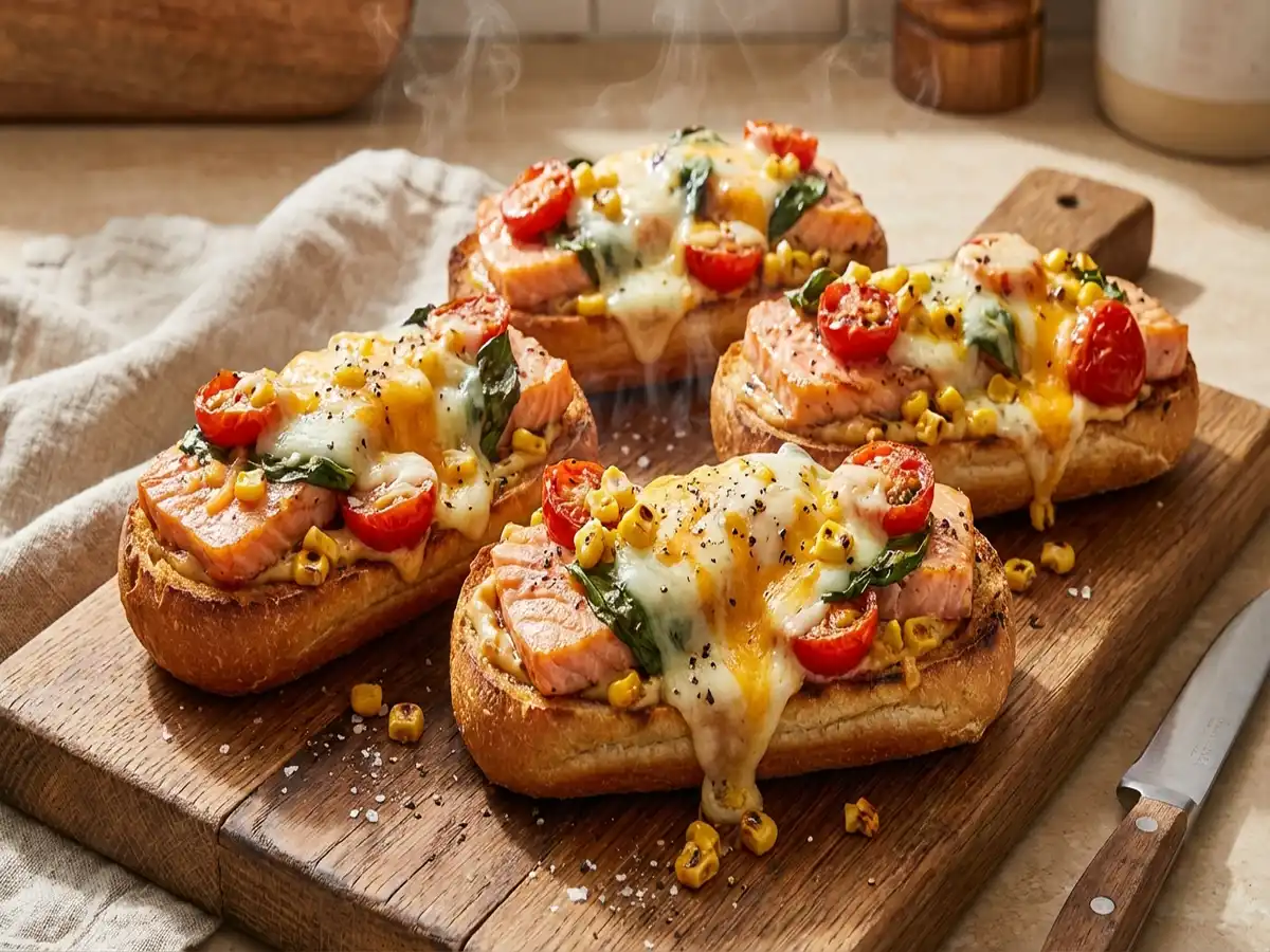 - トマト、バジル、コーンなどをトッピングして、トースターで5分ほど焼いたら完成