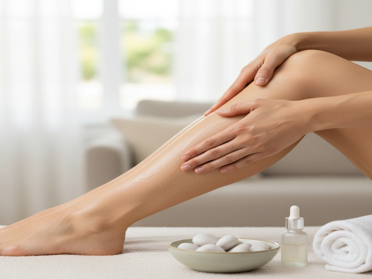 足首からひざへなでる。はじめは付け根の近くから、徐々に距離を増やす×1連を4セット