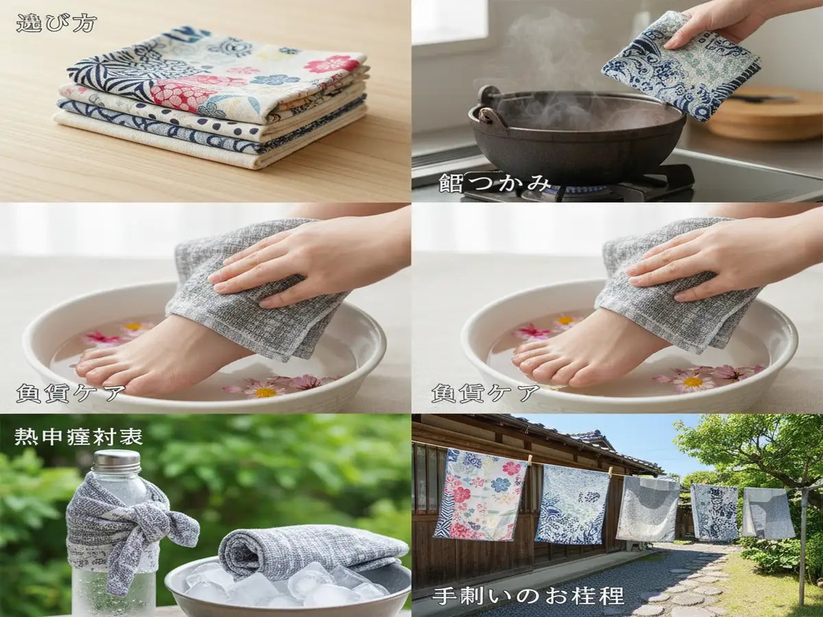 手ぬぐいシーン別活用法 選び方・鍋つかみ・角質ケア・熱中症対策・手拭いのお手入れ ツイQ楽ワザ 生活の知恵